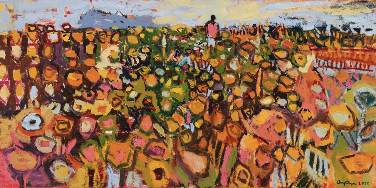 “When creating a show, I paint the entire body of work and then I title the painting series upon completion. This has become a tradition in my process where the title of the show brings the work into focus.