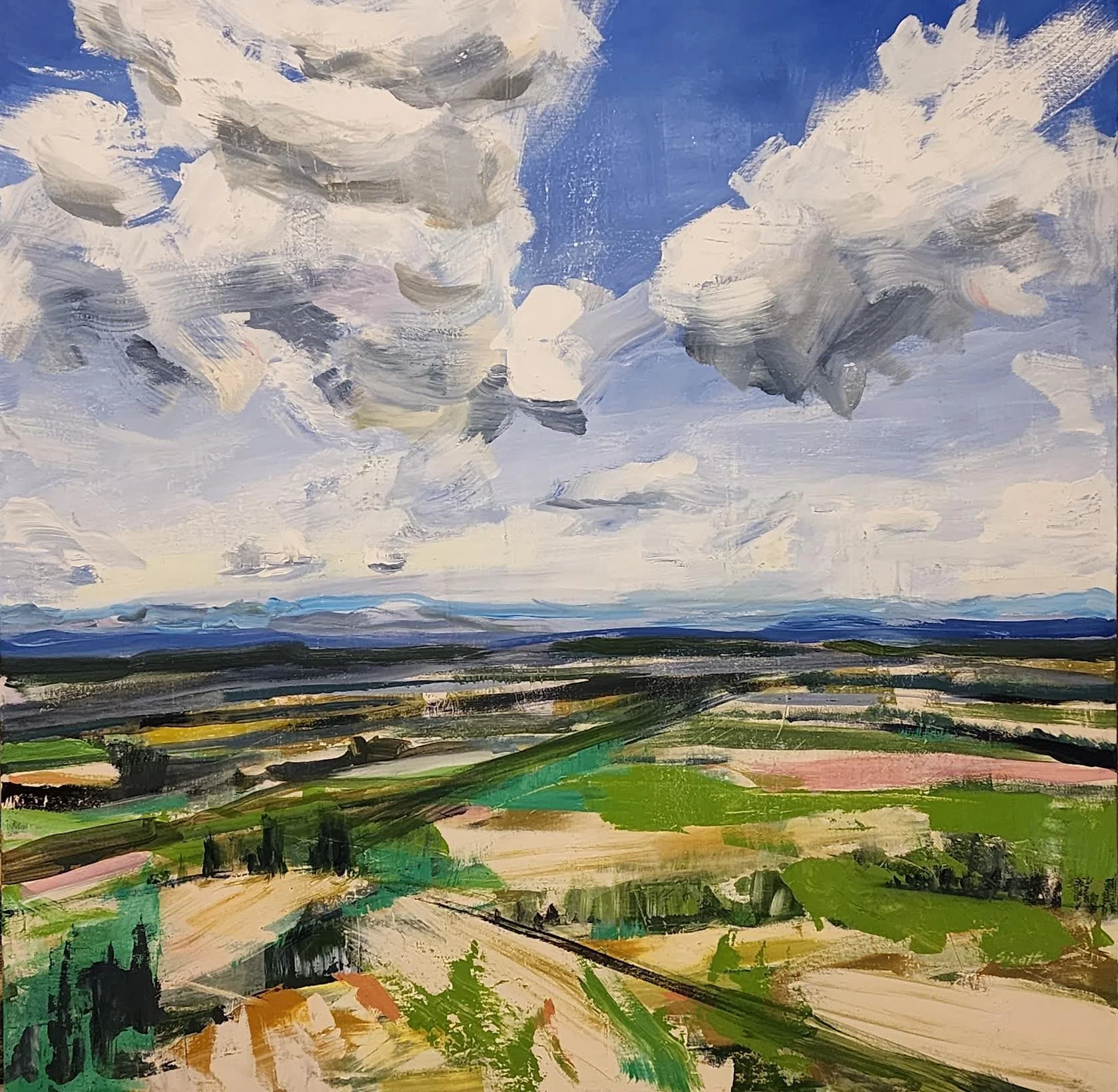In her atmospheric and sweeping images of nature, Annette Sicotte combines traveling observations of much loved locations with memories and dreams to create personalized and thus distorted imagery of the western landscape. The effect of the elements, the weather and the seasons seem to transform the still picture into a moving scene on canvas. With subdued colours and soft edged forms the work feels somewhat romantic but upon a closer look, the intuitive palette knife layers and loose brushwork make it feel entirely contemporary. Born and raised in Alberta, Annette has fished, hiked, camped and skied the backcountry of the Canadian Rockies and spent countless hours driving and photographing areas throughout western Canada. Annette paints to share the sensation of being outdoors in the wilderness or to simply quiet the urban experience in favour of a serene connection to nature.