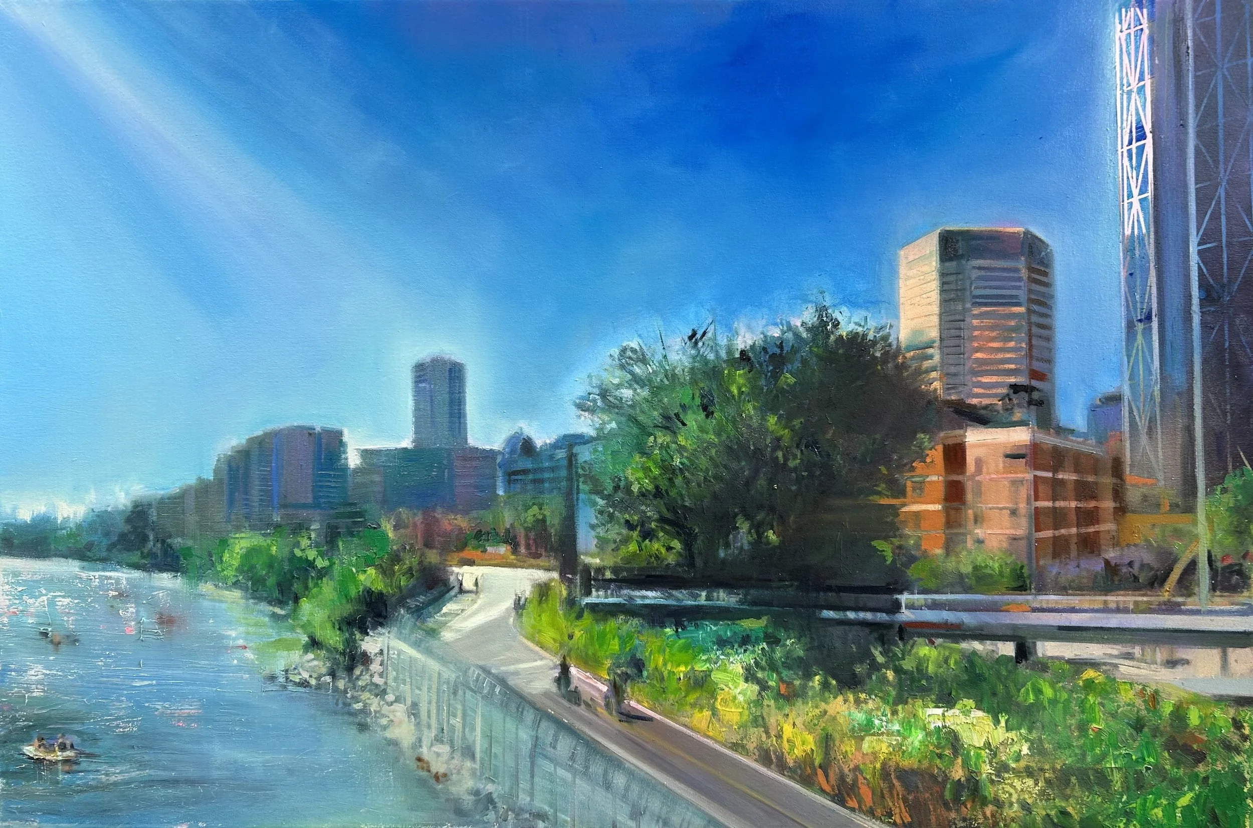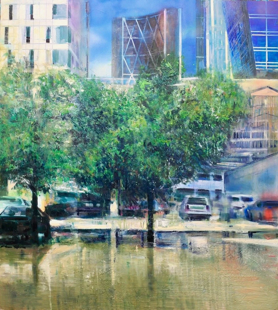 SOLD Chrissy Nickerson “Urban Forest Renewal” 40 x 72” Oil 2023 $5152