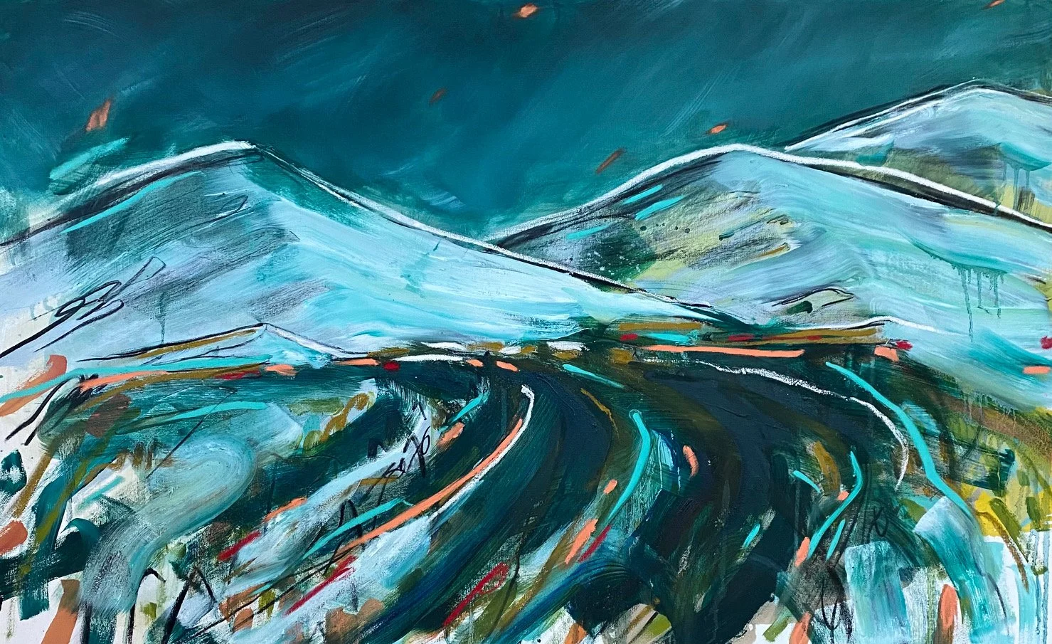 Serpantine Mountain Road 48 x 68” Oil and Charcoal on Canvas 2023 $5500