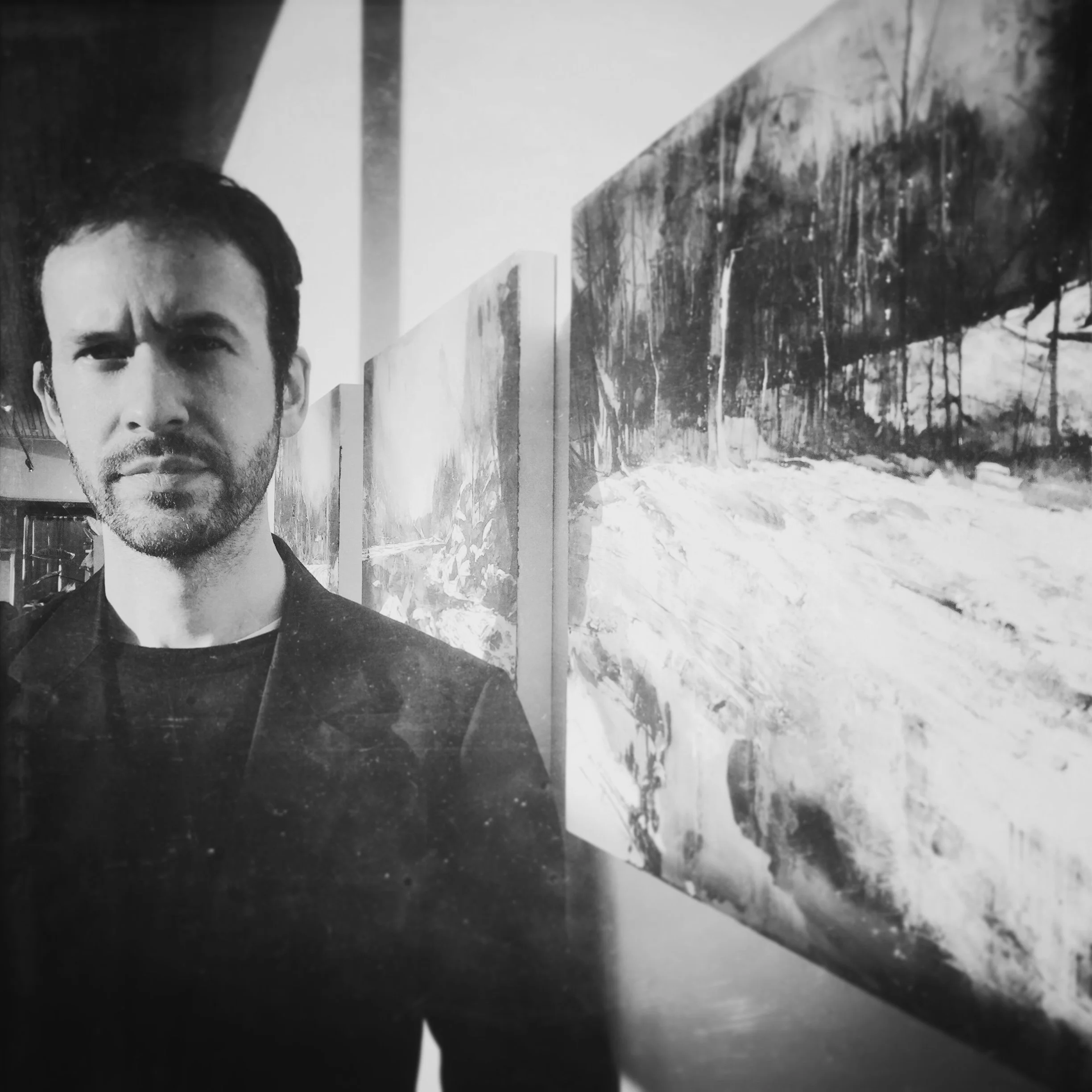 “My primary drive as an artist is to try to make sense of my place in the world. Through the caprices and inconsistencies of memory, I hope to access a collective memory of place. I do not seek to illustrate aparticular place in point of fact, but rather develop and ultimately ‘make‘ a version of the world seen through the isolated lens of personal experience. The paintings are works of memory. This acts as a filter through which to retain only that which becomes important. The inevitable mix of my own history and experience fills in the gaps. The final image is therefore a remnant, the world distilled. My recent work is painted on a rigid support; either a birch or mdf panel or an Aluminium composite material, making them very stable and archivally sound. The paintings are made through an indirect process, the image and surface built up through successive layers of glazing and scumbling. These techniques are steeped in the history and tradition of painting, but allow me great emotional and physical freedom. Each layer imbues a tension, a creative destruction, in which chance and a degree of brinkmanship are invited into the process. The resulting paintings carry a technical narrative - a history of paint - that is all their own. They are built from time; their surfaces becoming a record of every flawed decision made right. The creative heroes that have influenced me over the years are varied and disparate, but the direct references come mostly from the fields of painting and photography. I am drawn to the collodion landscape photographs of Sally Mann, and the patient, time revealing images of Thomas Joshua Cooper and Hiroshi Sugimoto. The process of making is so apparent in the dedicated craft of each artist, yet the work gently transcends process and picks away at how we decode memories of place. My love of and belief in the practice of painting compel a broad interest in its history. My own work draws from the luminous surfaces of Vermeer to the destructive physicality of Nicola Samori and Adrian Ghenie, from the compositional ingenuity of Vincent Desiderio to the alchemical expansiveness of Anselm Kiefer. It is also impossible for me to talk about landscape painting without reference to Corot and the Barbizon School, whose search for light in amongst the three dimensionality of things engaged with both an unflinching reality, and a direct feel for the stuff of paint.”