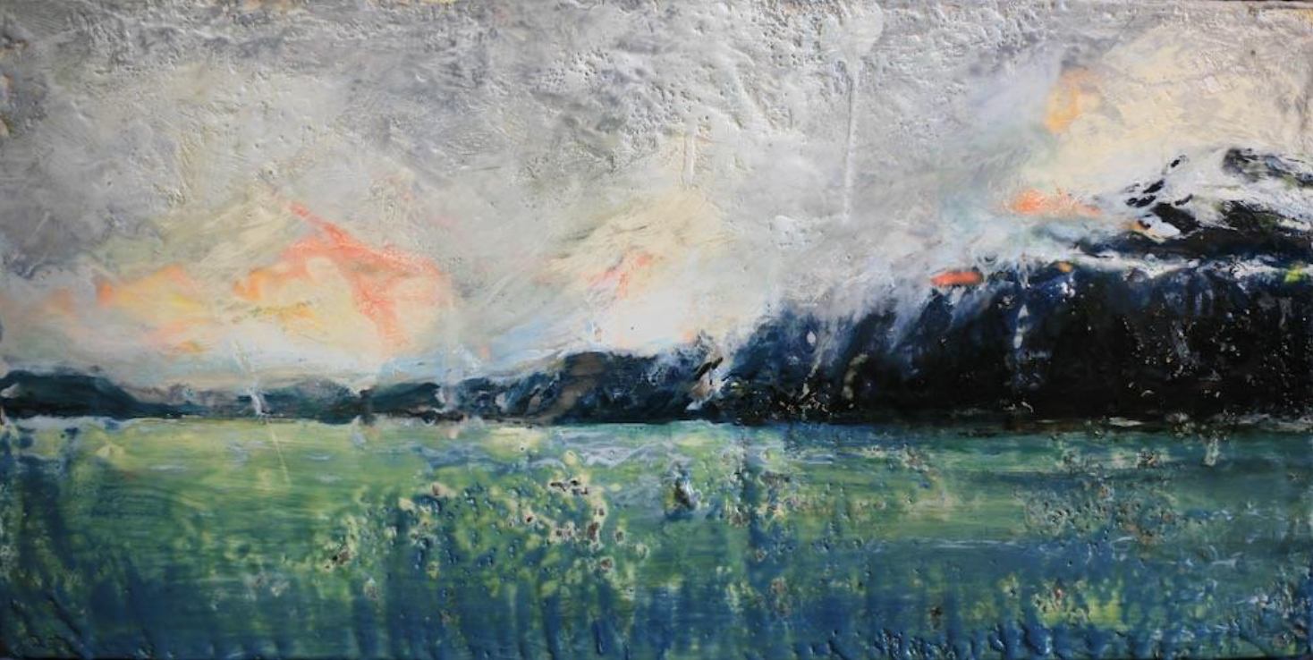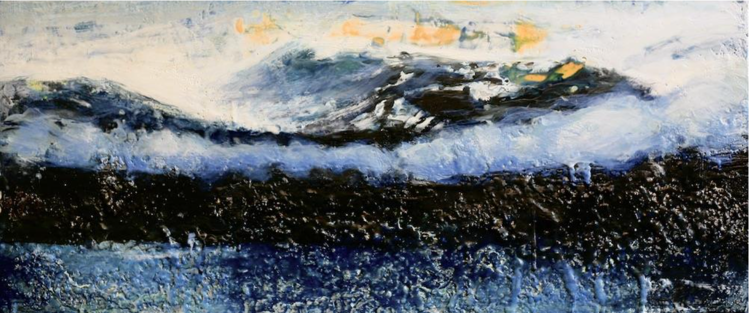 Mark Holliday "Alaska D" Alaska D 2).jpeg alaska D 1).jpeg alaska D 3).jpeg Alaska (D) 2025, Encaustic:lead:paper on panel, 12" x 30" jpeg.jpeg