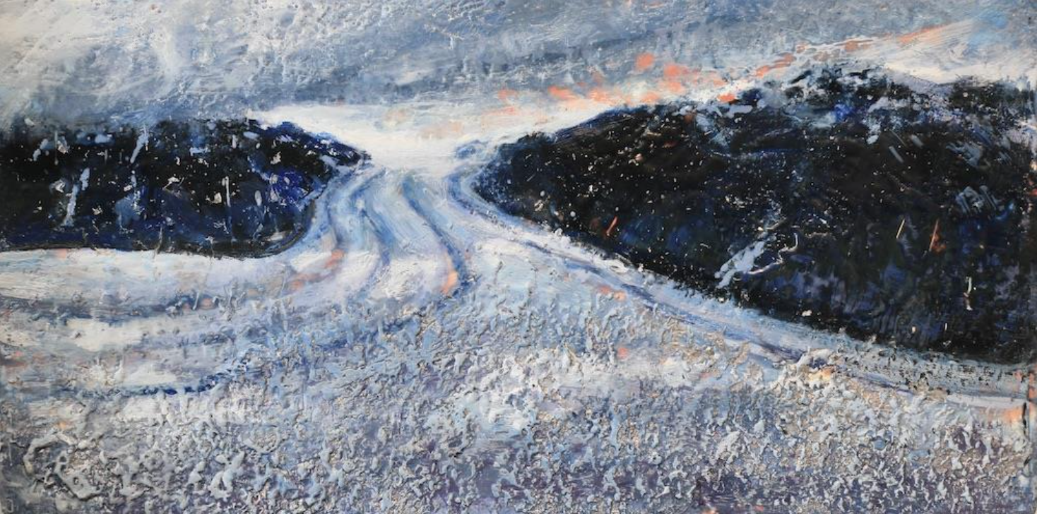 Mark Holliday "Glacier Study B" glacier study B 3).jpeg glacier study B 2).jpeg glacier study B 1).jpeg Glacier study (B) 2025, encaustic:lead on panel, 24” x 12”.jpeg