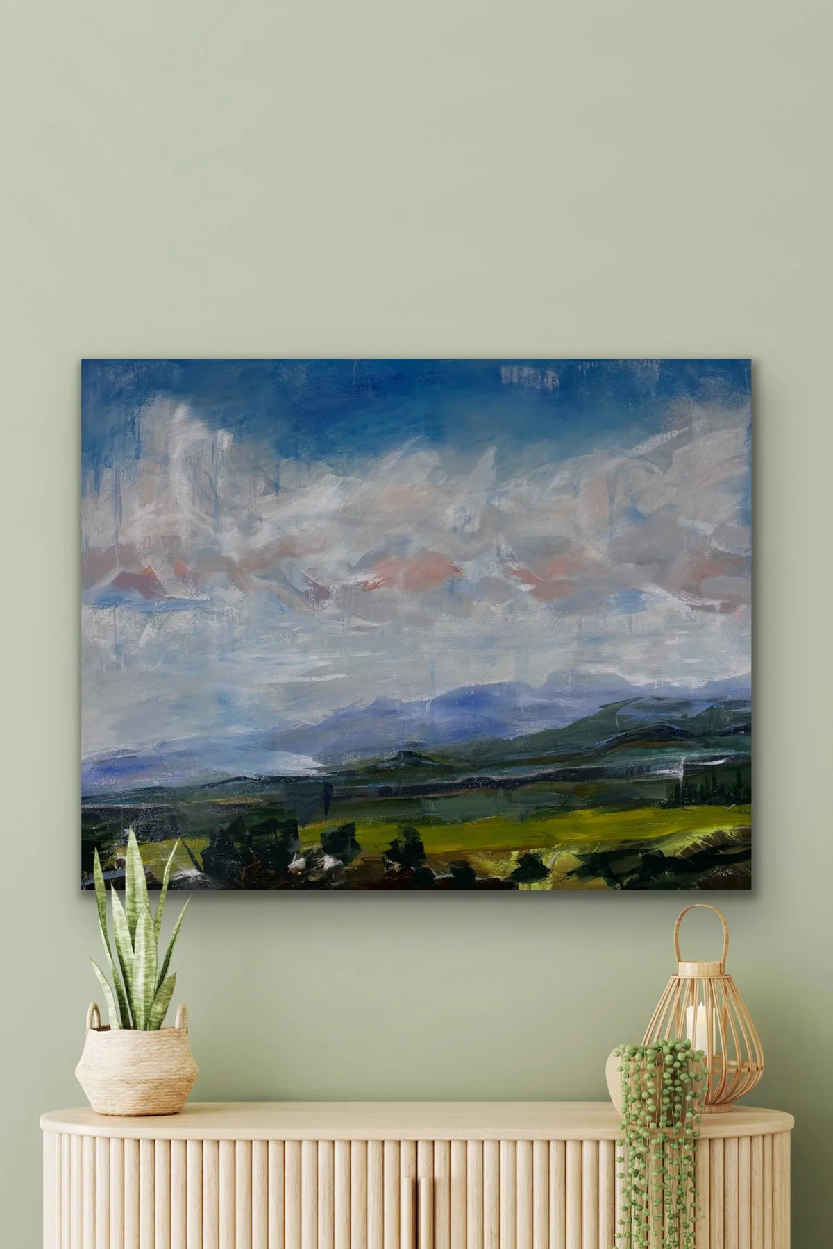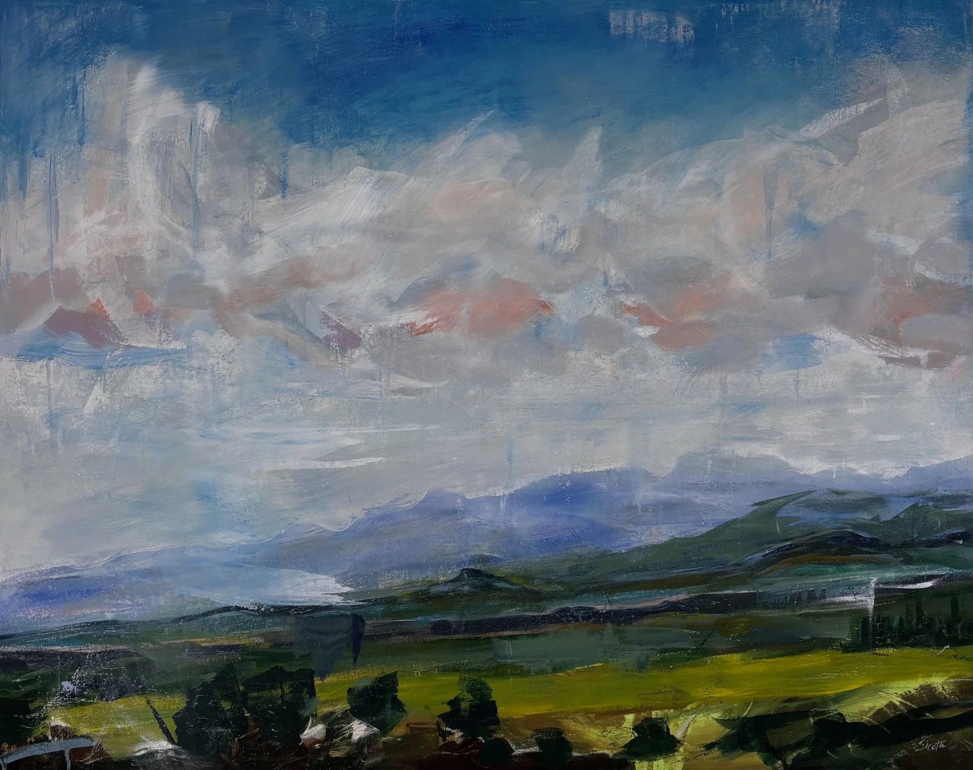 In her atmospheric and sweeping images of nature, Annette Sicotte combines traveling observations of much loved locations with memories and dreams to create personalized and thus distorted imagery of the western landscape. The effect of the elements, the weather and the seasons seem to transform the still picture into a moving scene on canvas. With subdued colours and soft edged forms the work feels somewhat romantic but upon a closer look, the intuitive palette knife layers and loose brushwork make it feel entirely contemporary. Born and raised in Alberta, Annette has fished, hiked, camped and skied the backcountry of the Canadian Rockies and spent countless hours driving and photographing areas throughout western Canada. Annette paints to share the sensation of being outdoors in the wilderness or to simply quiet the urban experience in favour of a serene connection to nature.