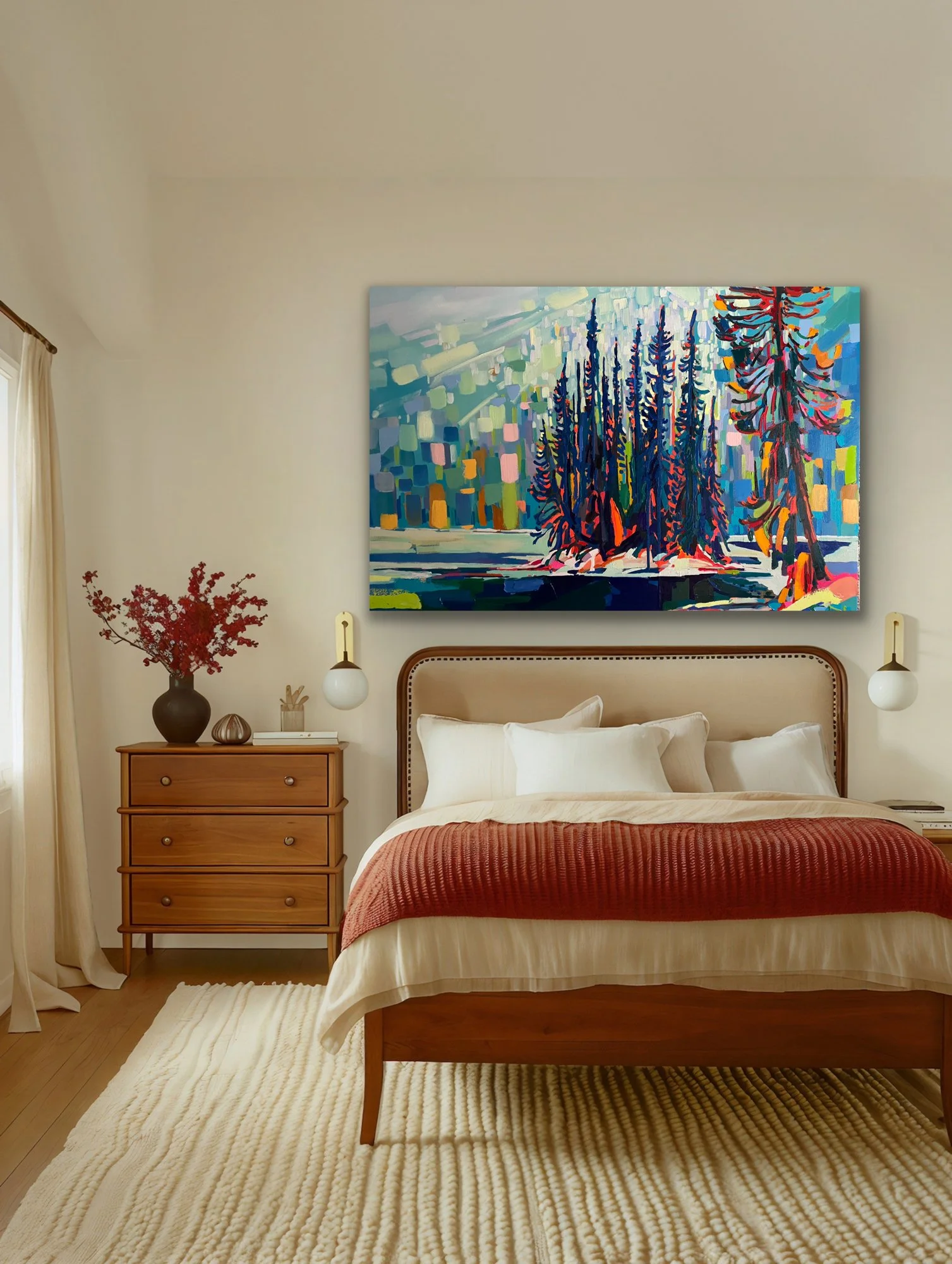 From her upcoming exhibition at Elevation Gallery, Fernie “Stay Here”, Chrissy Nickerson takes inspiration from the lush early spring landscapes in the southern Rocky Mountains near Fernie, British Columbia and near her home in Canmore, Alberta. .